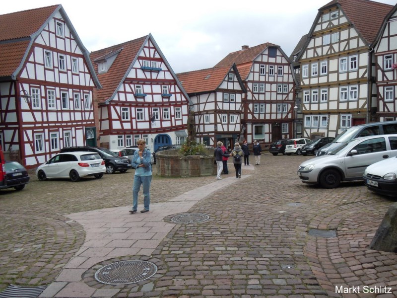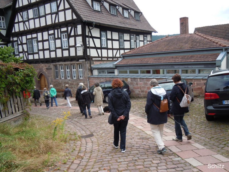 Während der Anreise konnten die Wanderfreunde bei einem Zwischenstopp in Schlitz unter anderem die malerische Altstadt mit ihrer großen Burganlage und dem 36 m hohen Turm bestaunen, der in der Weihnachtszeit immer mit rotem Tuch bespannt und so bei entsprechender Beleuchtung zur größten brennenden Kerze der Welt umgestaltet wird. Vom Turm aus konnte man auch einen ersten Überblick über die Rhön genießen.