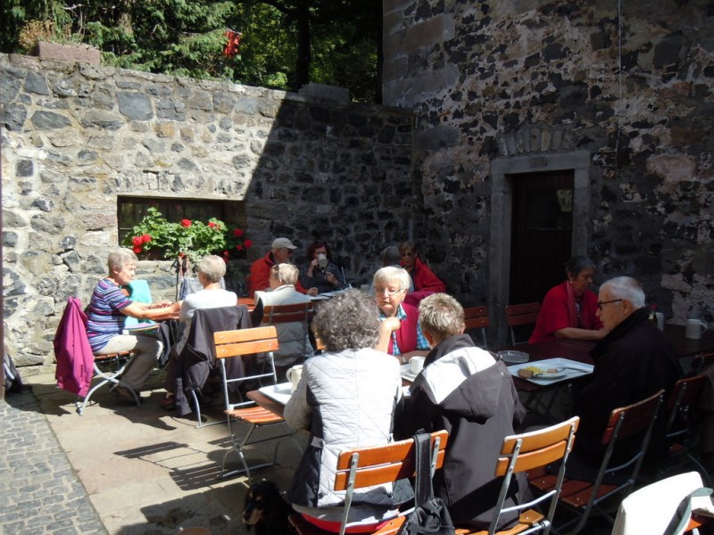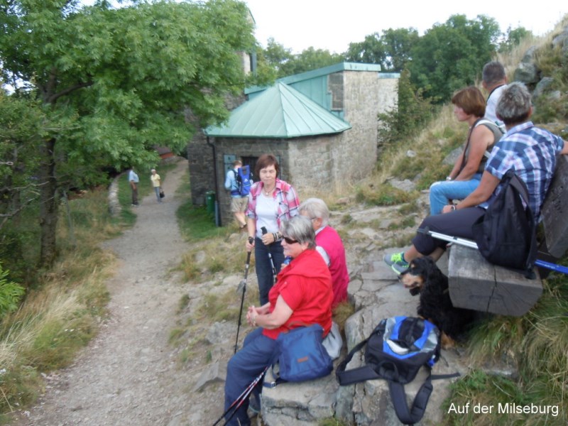 Zum Abschluss wurde auf der Heimfahrt noch die Milseburg erklommen, die „Perle der Rhön“ mit einem atemberaubenden Ausblick über die Region. Hier konnte man sich in der bewirtschafteten Milseburghütte stärken, die weder ans öffentliche Stromnetz angeschlossen ist noch über fließendes Wasser verfügt. Man kann sich vorstellen, wie mühsam es vor allem im Winter ist, Speisen und Frischwasser aus dem Tal zu holen – notfalls eben zu Fuß und mit Rucksäcken.