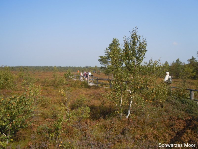 Eine besonders anstrengende Tour führte zum Heidelstein in 926 m Höhe, wo die Gruppe durch ein weites Naturschutzgebiet wandern konnte. Eine andere Art von Naturschutzgelände wartete am letzten Tag im „Schwarzen Moor“ im Dreiländereck Hessen-Bayern-Thüringen auf die Wanderer, wo diese einige Kilometer weit nur über Bohlenstege gehen durften, dabei viele Informationen zum Biosphärenreservat erhielten und auch mit eindringlichen Warnungen vor Kreuzottern konfrontiert wurden.