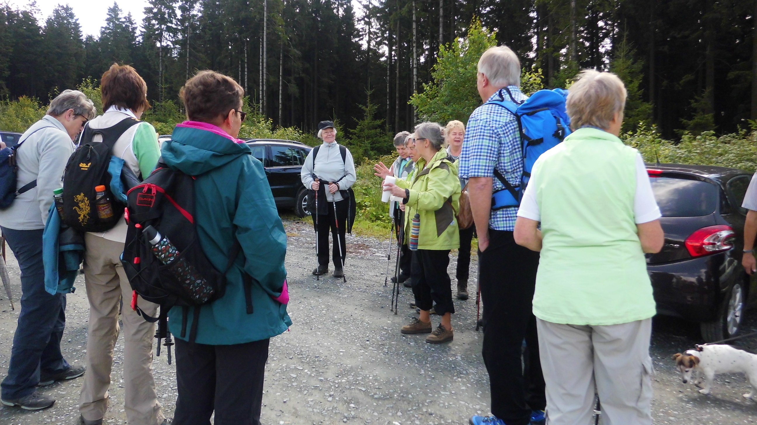 Los ging es ab Treffpunkt Wandertafel zur Ganztagswanderung nach Niedersfeld. Geparkt wurde auf dem dortigen Parkplatz unterhalb der Hochheide-Hütte. 20 Wanderen wünschte Annegret Willer, die diese Route ausgearbeitet hatte, ein fröhliches „Frisch auf“. Es war trocken, wurde wundervoll sonnig, ein Wanderwetter, das man am frühen Sonntagmorgen nicht zu hoffen wagte.
