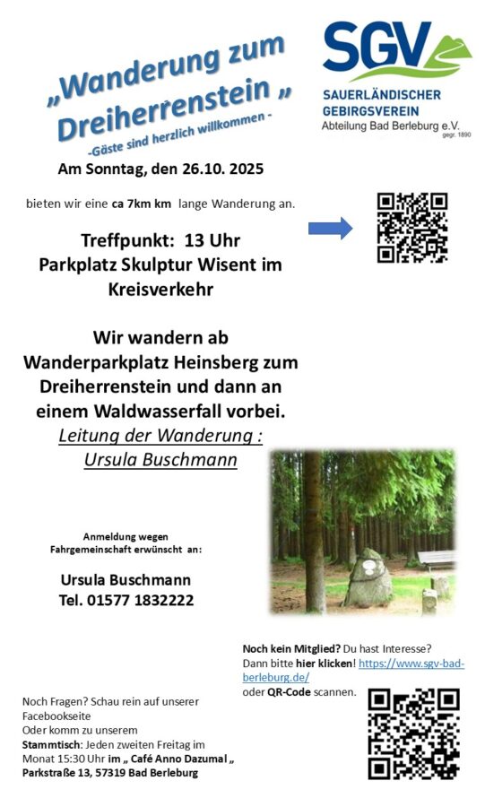 Sonntag, den 26.10.2025 Wanderung zum Dreiherrenstein