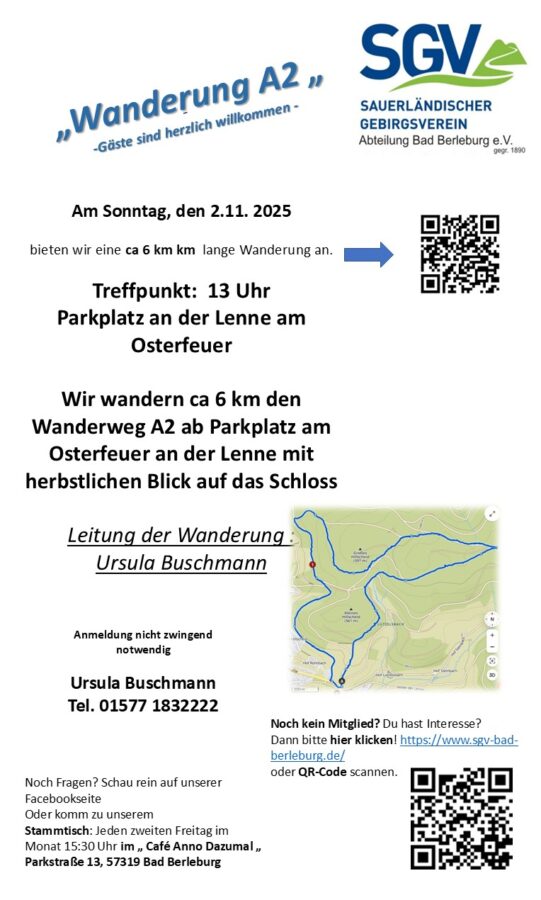 Am Sonntag, den 2.11.2025 Wanderweg A2