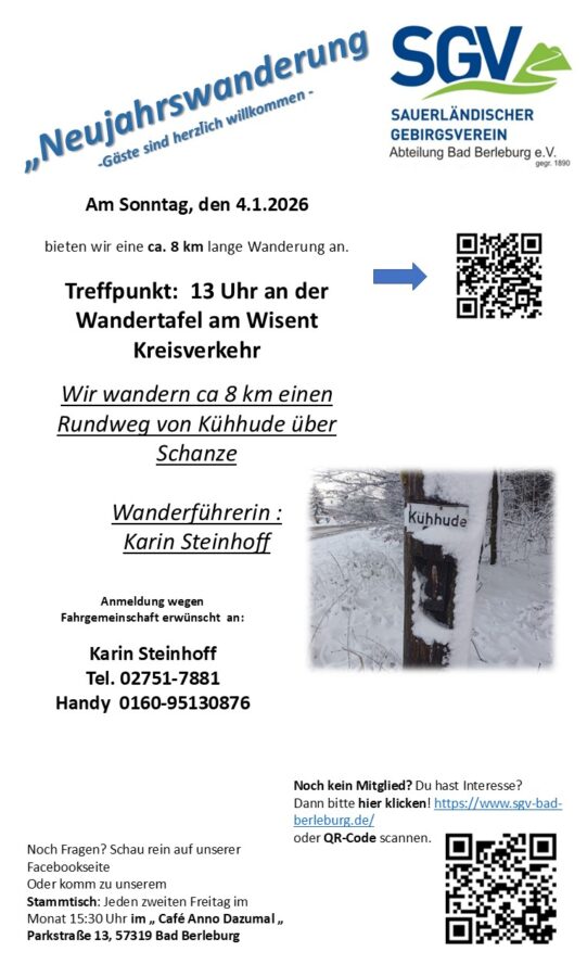 Sonntag, den 4.1.2026 Neujahrswanderung