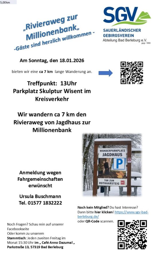 Am Sonntag, den 18.1.2026 Rivieraweg zur Millionenbank