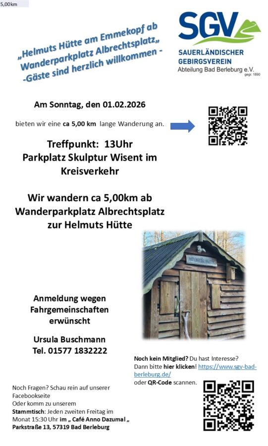 Am Sonntag, den 1.2.2026 Helmuts Hütte