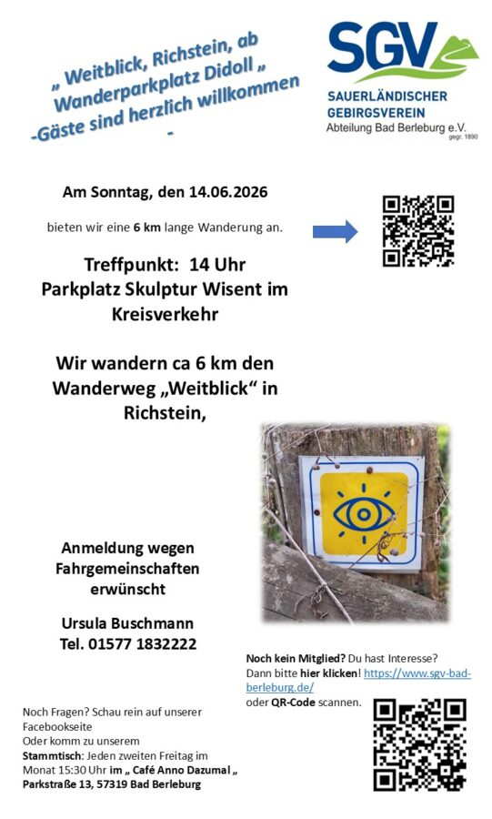 Am Sonntag, den 14.6.2026 Rundwanderweg Weitblick in Richstein