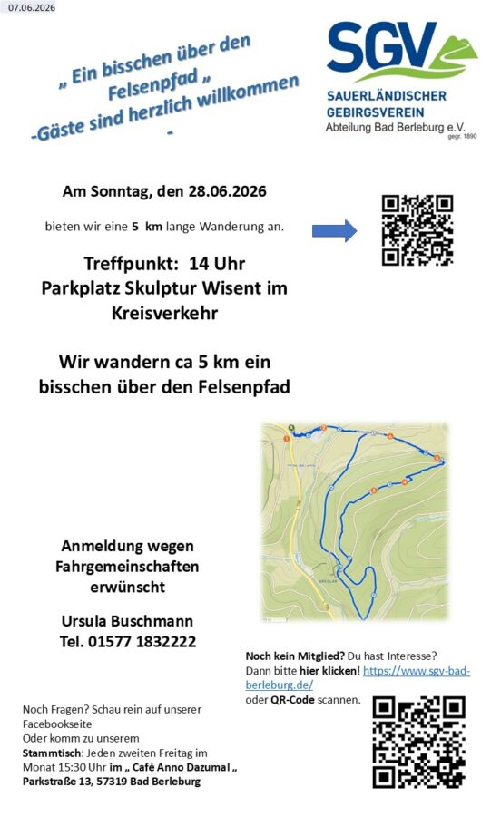 Am Sonntag, den 28.06.2026 Über den Felsenpfad