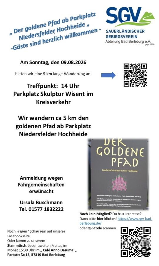 Am Sonntag, den 09.08.2026 Der Goldene Pfad