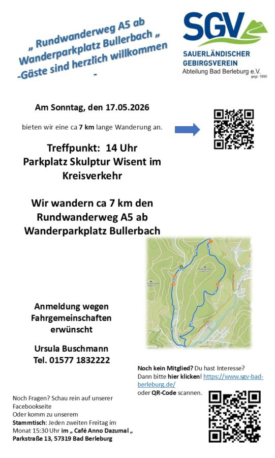 Am Sonntag, den 17.5.2026 Rundwanderweg A5 ab Bullerbach